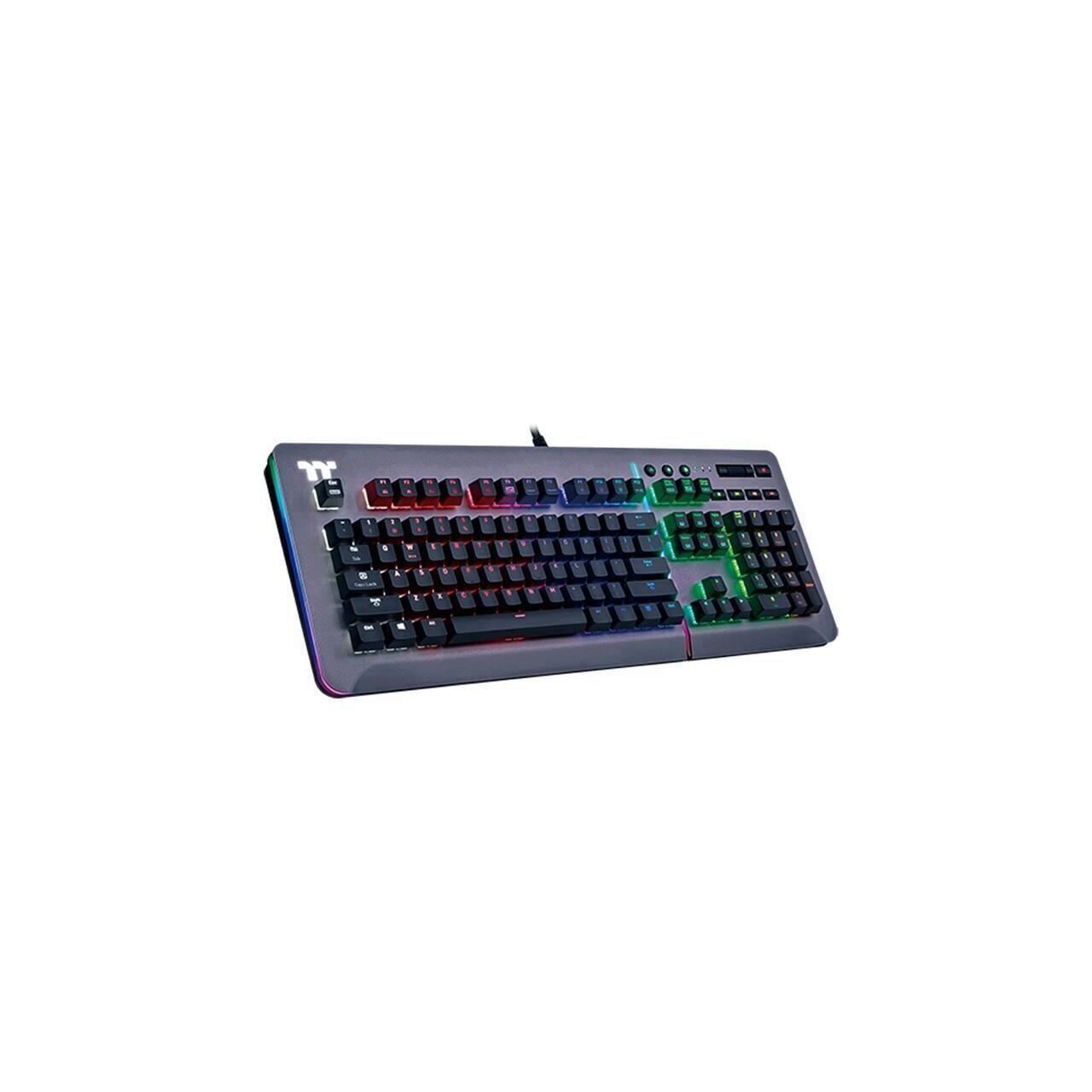 Tastatura gaming mecanica Thermaltake Premium Level 20 iluminare RGB gri, constructie superioara din aluminiu, tastatura mecanica (switch-uri mecanice gri Cherry MX Speed, garantate pentru 50 milioane de apasari), iluminare LED RGB (16.8 milioane de culori) cu nivel de intensitate luminoasa ajustabil, iluminare RGB pe 3 laturi, 4Mb memorie on-board, 5 profile pentru jocuri, polling rate de pana la 1000Hz (de pana la 8 ori mai rapid ca o tastatura normala), 100% anti ghosting N key rollover pe USB, butoane dedicate multimedia, port USB si jack, compatibila TT RGB Plus si Amazon Alexa, lungime cablu: 1.8m, dimensiuni: 482 x 185.96 x 43.93 mm, greutate: 1500g, conectori: 2x USB si 1 jack TRRS