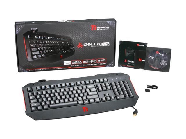 Tt eSPORTS CHALLENGER, 32KB memorie on-board, port USB 2.0 pentru periferice, software pentru configurare (posibilitatea setarii a 3 profile, posibilitatea salvarii profilelor in memoria tastaturii, timer pentru jocuri, profilele por fi schimbate direct de pe tastatura), 6 taste macro, 7 taste multimedia, sistem de cable management, ventilator pentru racirea mainilor (6000 RPM, 2.7 CFM, 21.7 dB), taste dummy pentru butoanele Windows pentru a preveni apasarea accidentala, dimensiuni: 480 x 205 x 25mm, lungime cablu: 2m, USB