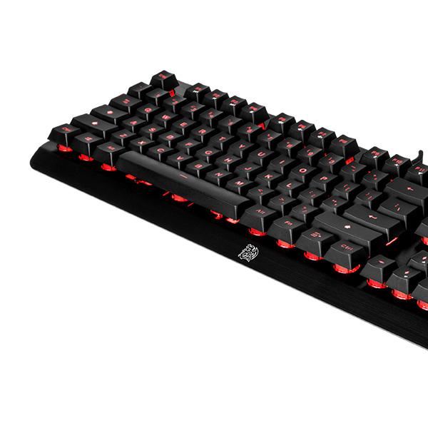 Tt eSPORTS CHALLENGER Edge, iluminare LED multicolora RGB (8 culori disponibile) cu 4 efecte de iluminare, anti-ghosting/n-key rollover pentru combinatii de 6 taste (permite inregistrarea simultana a apasarii oricaror 6 taste din urmatoarele: Q, A, Z, W, S, X, E, D, C, B, SPACE, TAB, cele 4 taste directionale), panou frontal din aluminiu pentru un design elegant, functii pentru blocarea tastelor WIN si a tastaturii, polling rate: 125Hz, 7 taste multimedia, dimensiuni: 462 x 155 x 50mm, lungime cablu: 1.8m, greutate: 1255g, USB