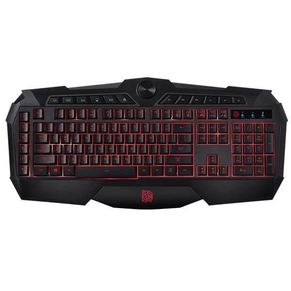 Tt eSPORTS CHALLENGER Prime, iluminare LED multicolora (albastru, rosu, violet) cu posibilitatea controlului intensitatii luminoase si diverse efecte de lumina, polling rate: 1000Hz, software pentru configurare (posibilitatea setarii a 3 profile, posibilitatea salvarii profilelor in memoria tastaturii, profilele por fi schimbate direct de pe tastatura), anti ghosting: 6-8 taste, 6 taste macro, 9 taste multimedia, dimensiuni: 508 x 239 x 24mm, lungime cablu: 1.5m, USB