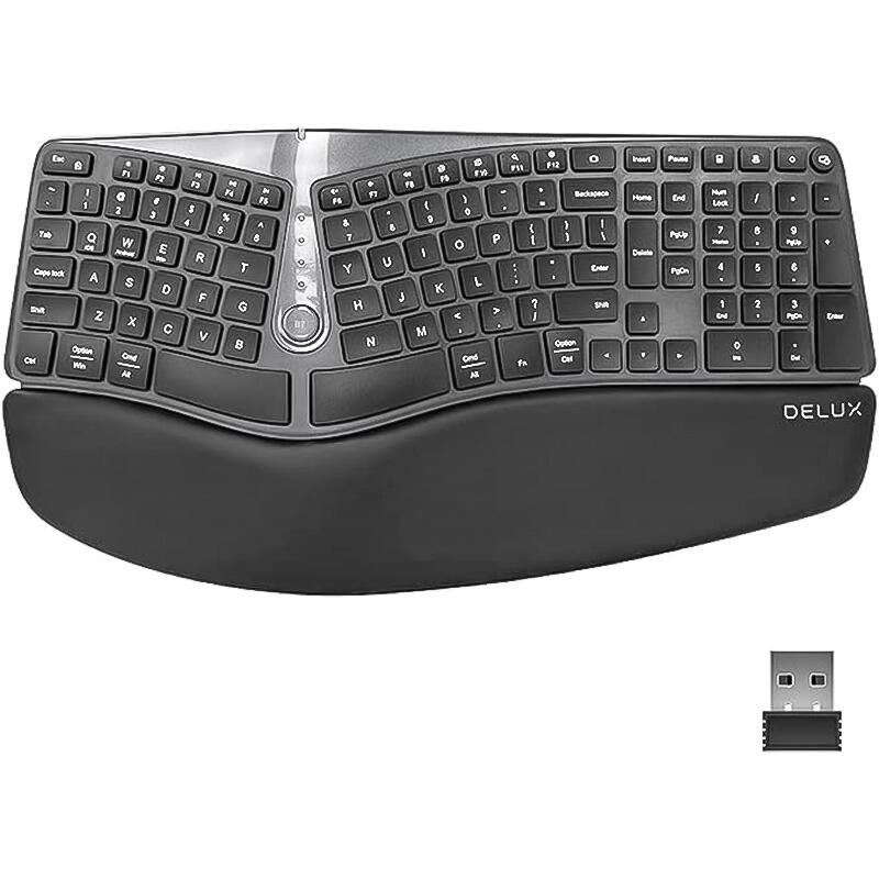 Tastatura wireless si Bluetooth Delux GM901D neagra redefineste experienta de tastare, oferind o combinatie impecabila intre confort, functionalitate si versatilitate. Designul sau ergonomic si inovator asigura un confort maxim chiar si in timpul sesiunilor de tastare prelungite. Cu un total de 25 de taste fara conflict, aceasta tastatura asigura o tastare precisa si fluenta, chiar si atunci cand se apasa mai multe taste simultan.