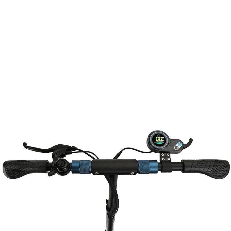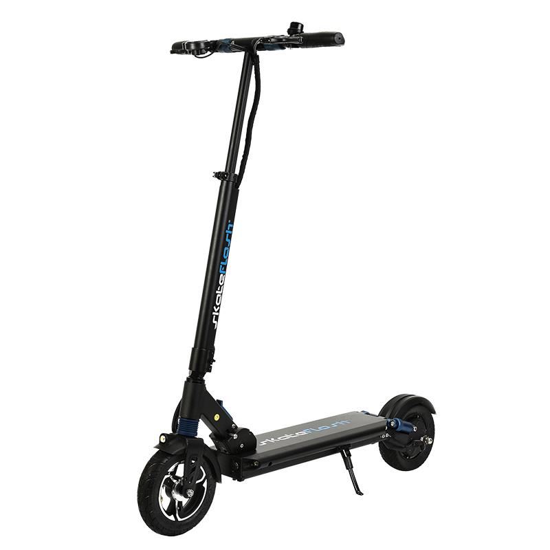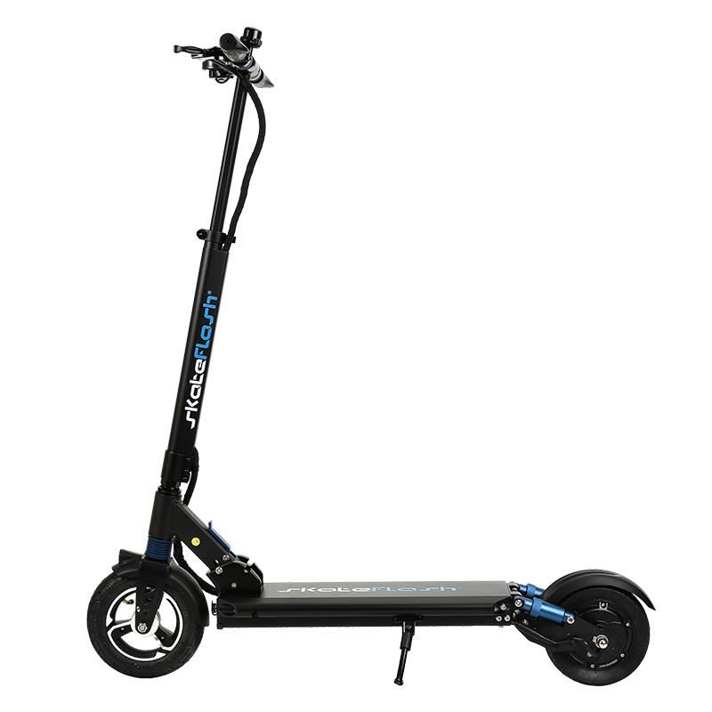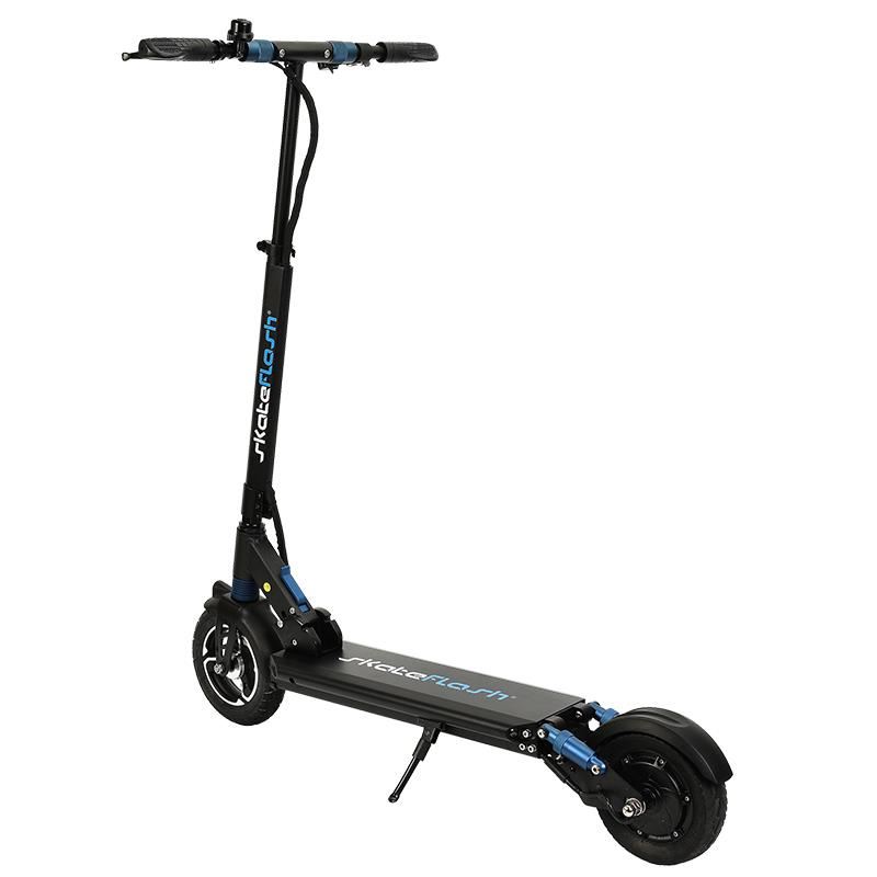 Trotineta electrica Skateflash Echo neagra, recomandata pentru varste intre 14-50 de ani, statura 120-200cm, putere motor: 350W, viteza maxima: 25km/h, dimensiuni roti: fata 8.5” pneumatica / spate 8” solida, suspensii fata si spate, tablou de bord prevazut cu afisaj LED pentru indicarea nivelului bateriei, distanta parcursa, mod, viteza, indicator lumini, ghidon reglabil pe inaltime si pliabil, manere ergonomice din cauciuc pentru o priza cat mai buna, cric retractabil, autonomie: pana la 35km, timp de incarcare: 3-5 ore, distanta de franare: aproximativ 11.4m, far (3 LED-uri, unul pe ghidon si 2 pe baza, stop (2 LED-uri, itermitent pentru franare si permanent aprinse pentru deplasarea pe timpul noptii sau in conditii de iluminare scazuta), frana: spate pe tambur, material cadru: aluminiu, sistem de pliere, protectie IP: IP54 (praf, stropi si murdarie), greutate maxima admisa: 130kg, dimensiuni: 1035x570x1180mm, greutate:L 17kg