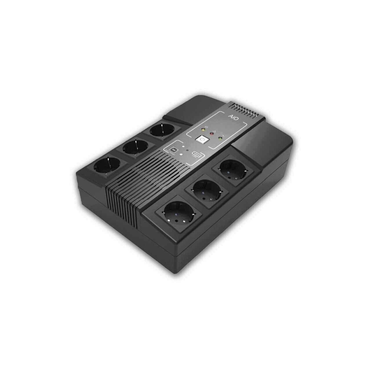 Kstar AIO 800VA LED Full Schuko, capacitate: 800VA / 480W, tip: line-interactive, tip unda curent electric: sinusoidala simulata, baterie: 1x 12V/9AH, conectori: 6x Schuko, 2x RJ11, 1x USB Type-A, 1x USB Type-B, AVR boost and buck, protectii: discharge, overcharge si overload, include software pentru configurare, dimensiuni: 293 x 202 x 93mm, garantie baterie: 12 luni