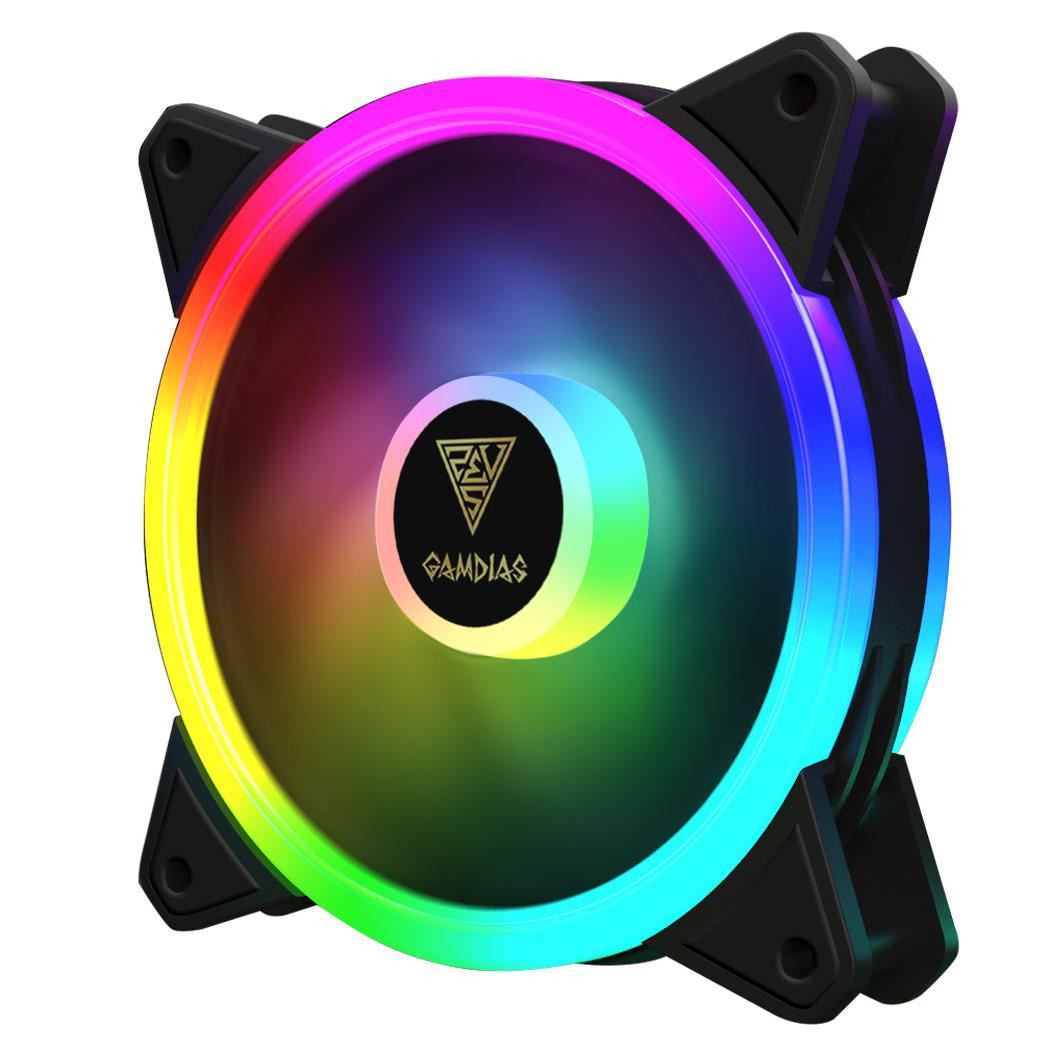 Ventilator Gamdias Aeolus M2 120mm iluminare RGB, iluminare Ring LED RGB pe ambele fete ale ventilatorului, inclusiv pe partea centrala cu peste 30 de moduri de iluminare, tip rulmet: Hydraulic Bearing, 1200-1500 RPM ±10%, 42-45.2 CFM, 17-31 dBA, 1.05-1.29 mmH2O, cablu plat, compatibil: 5V 3-pin RGB header (ASUS & ASROCK) / JRAINBOW (MSI) / Digital Pin Header (GIGABYTE), dimensiuni: 120x120x25mm