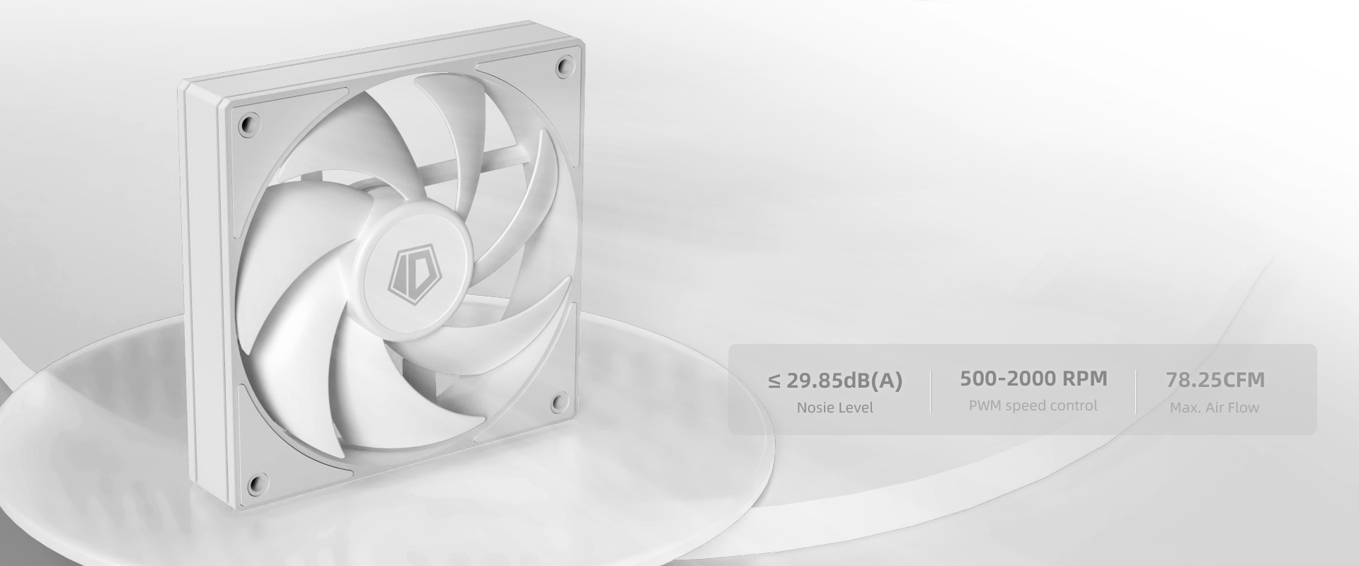 Designul alb al ventilatorului ofera o nota eleganta si moderna, fiind usor de integrat in orice configuratie de sistem, indiferent de tema de culoare. Ventilatorul poate adauga un contrast placut in carcasele negre sau poate completa o tema de culoare deschisa.