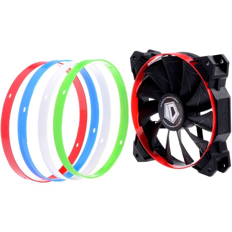 ID-Cooling SF-12025 120mm PWM fan, 4 inele colorate pentru personalizarea ventilatorului, rulmenti de tip Hydraulic Bearing, sistem de montare anti-vibratii, 800-2000 RPM, 84.5 CFM, 20-38.2 dBA, 3.2mmH2O, cablu plat, conector 4-pin PWM sau 4-pin Molex (cu adaptorul inclus), dimensiuni: 120x120x25mm, greutate: 160g