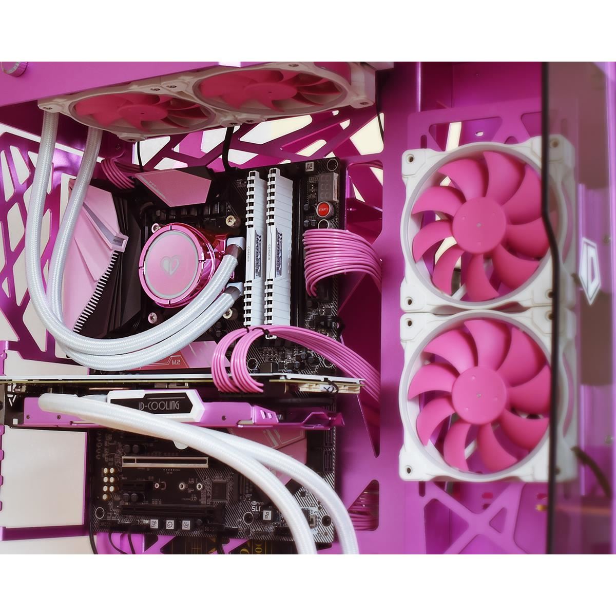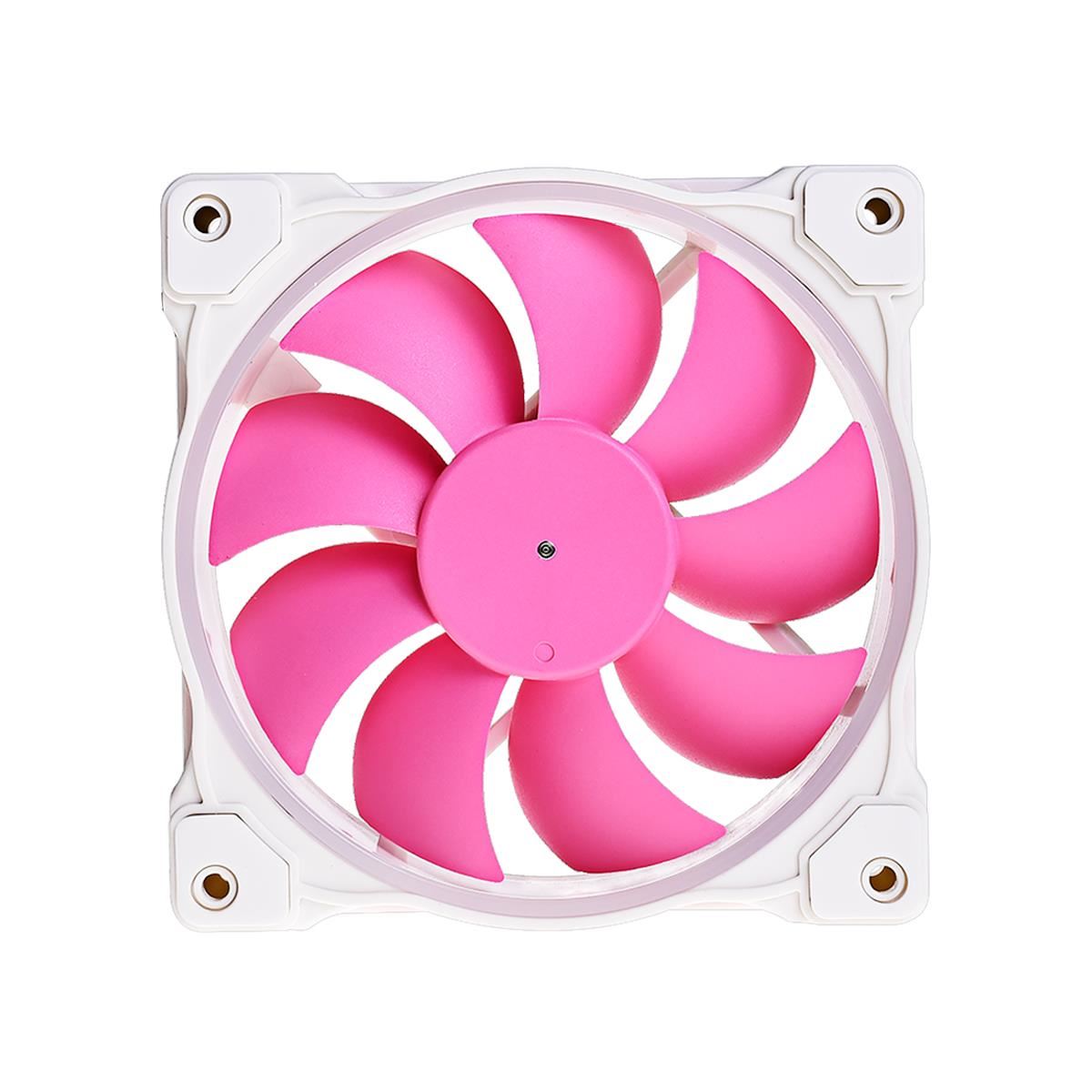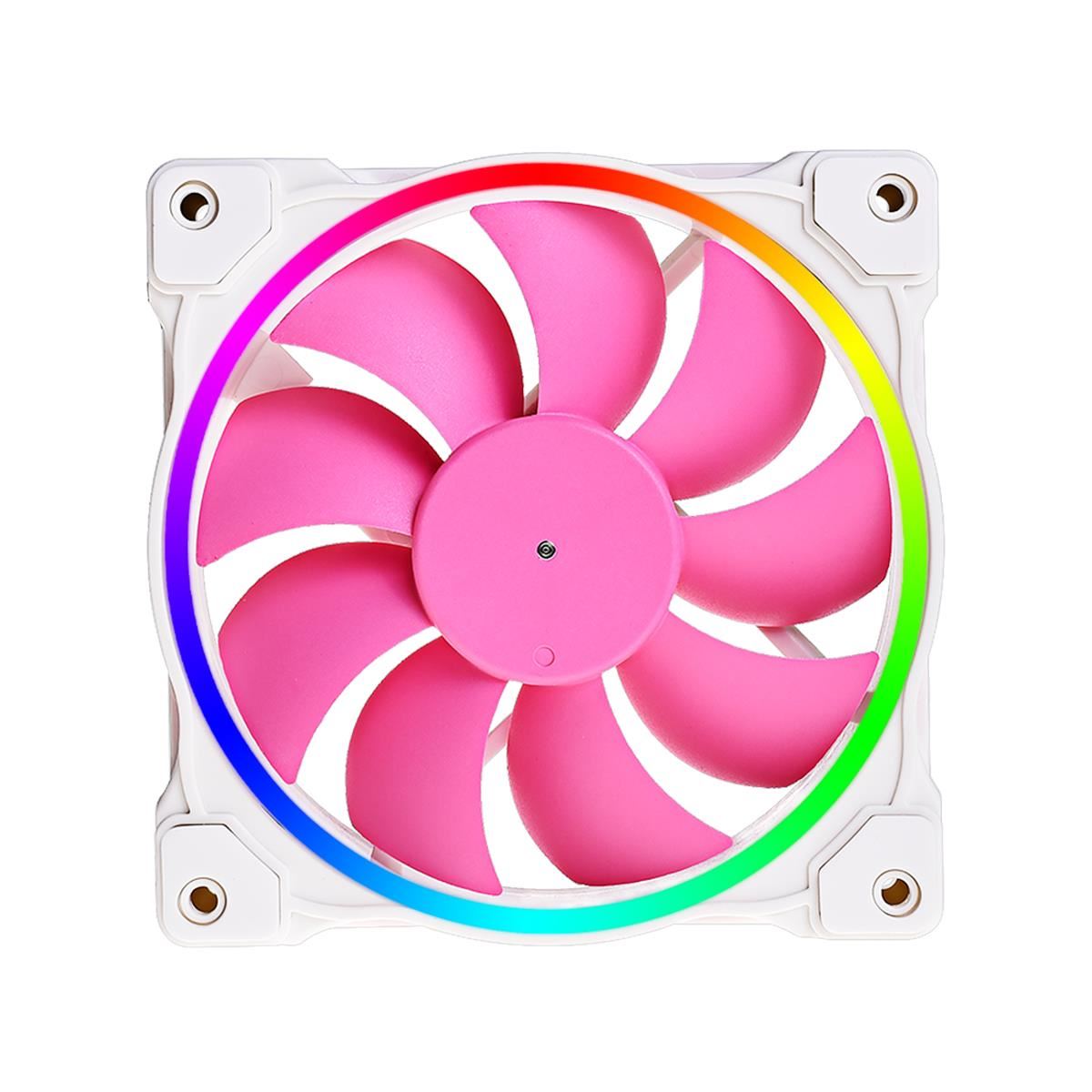 Ventilator ID-Cooling ZF-12025 120mm roz iluminare aRGB, rulmenti de tip Hydraulic Bearing, sistem de montare anti-vibratii, 900 - 2000 RPM, 55.2 CFM, 16.3-33.5 dBA, cablu plat, conector 4-pin PWM pentru ventilator si conector 3-pin pentru pentru iluminare RGB adresabila, se sincronizare cu placile de baza care suporta aceasta funcite, dimensiuni: 140x140x25mm, greutate: 208g