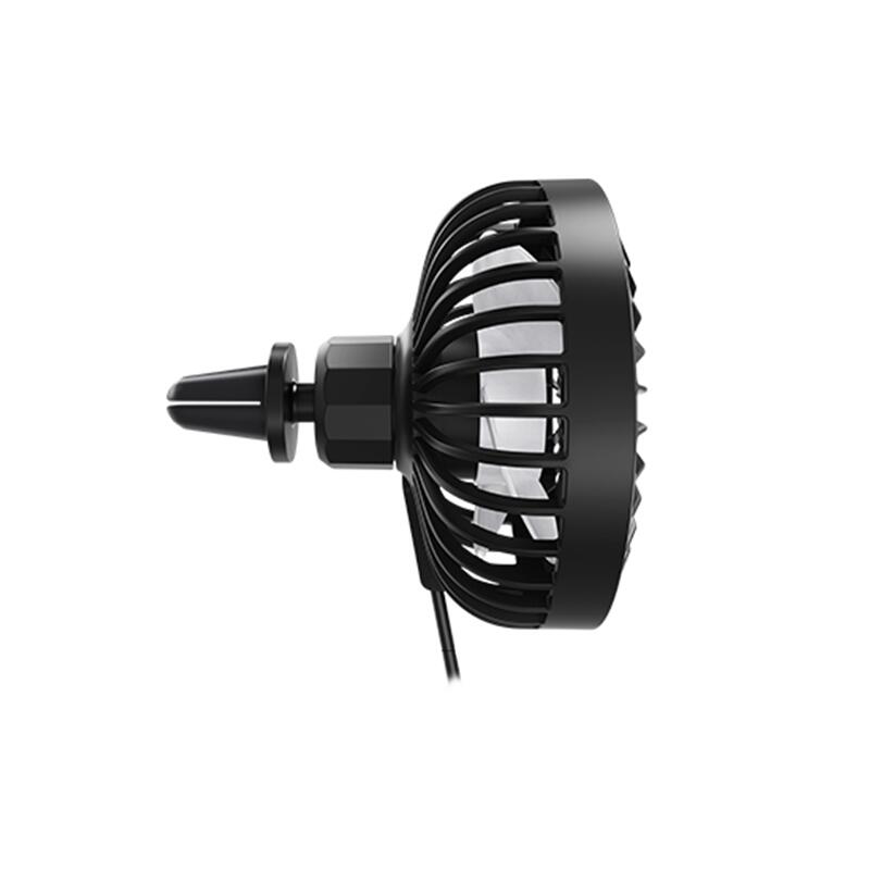 Ventilatorul are o prindere speciala care il permite sa fie fixat pe grila de ventilatie a bordului masinii. De asemenea, are un suport reglabil, astfel incat sa il puteti orienta in directia dorita.