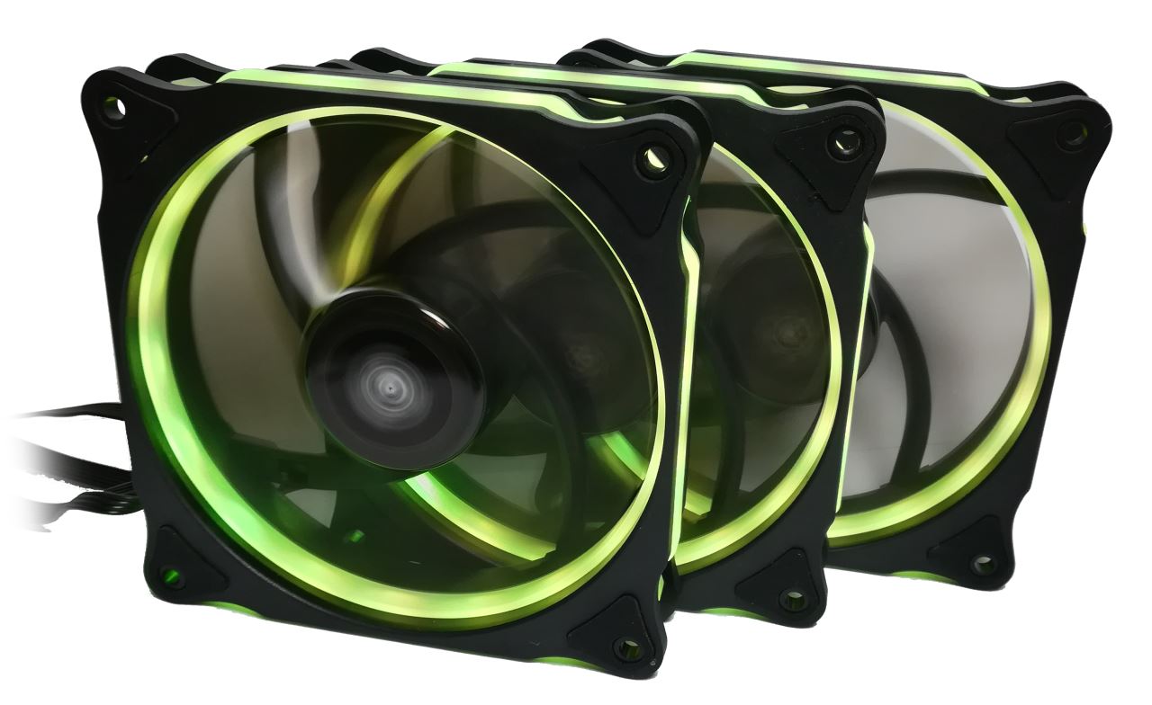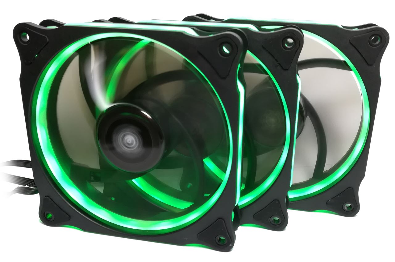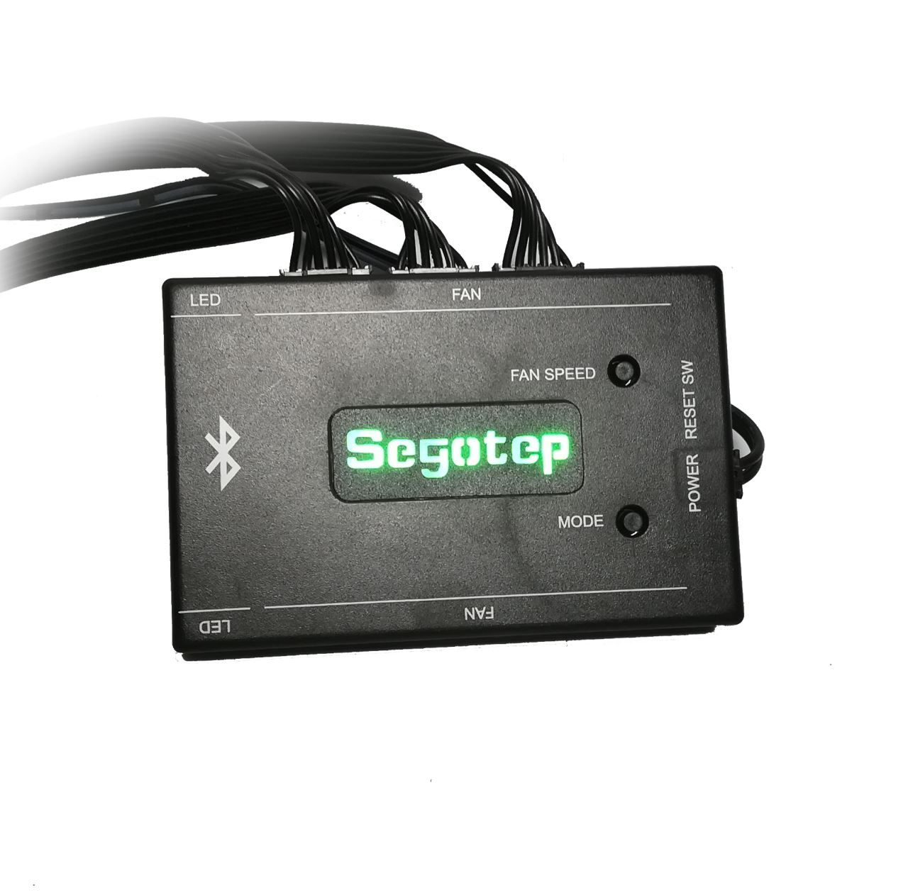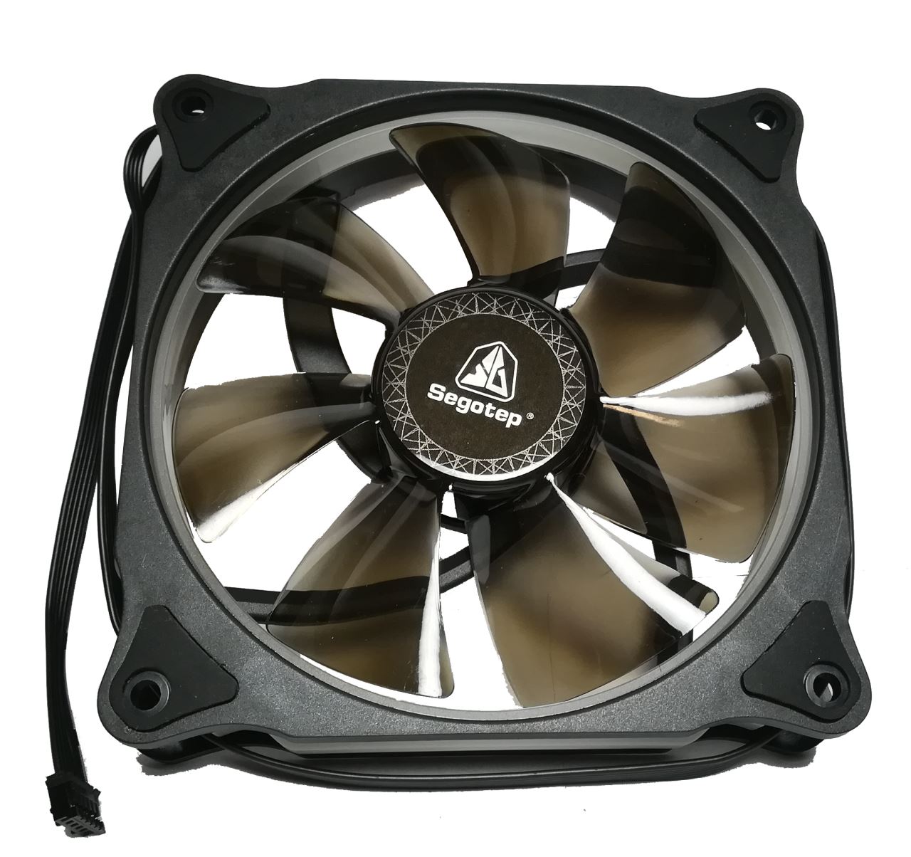 Segotep Halo Ring RGB 120mm Three fan kit, iluminare Ring LED RGB, sistem de montare anti-vibratii, 1100 RPM, 36 CFM, 22 dBA, 1.1 mmH2O, cablu plat, include modul de control prin Bluetooth Segotep RGB Hub (suporta pana la 8 ventilatoare si 2 benzi de LED-uri), dimensiuni: 120x120x25mm