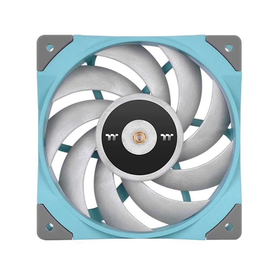 Ventilator Thermaltake ToughFan 12 120mm turquoise, 500-2000 RPM (cu cablu LNC 500-1500 RPM), 58.35 CFM (cu cablu LNC 45.72 CFM), 22.3 dBA (cu cablu LNC 19 dBA), 2.41 mm-H2O (cu cablu LNC 1.2522 mm-H2O), conector 4 pin PWM, greutate: 212.5 g