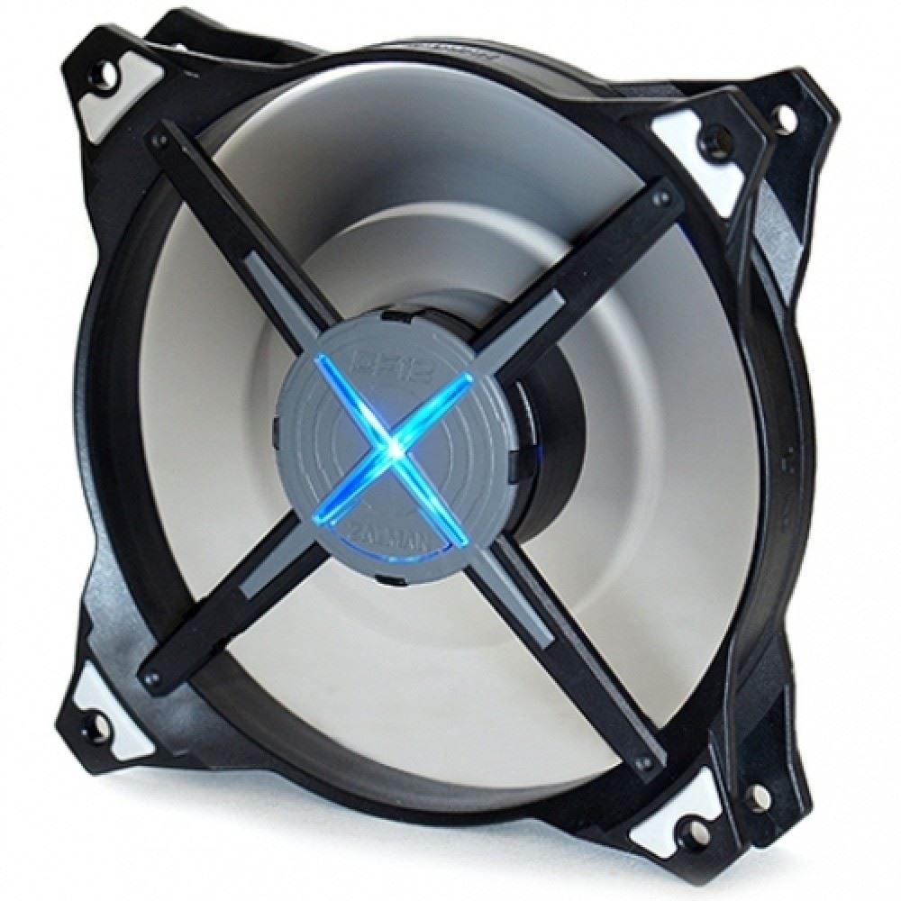 Zalman ZM-DF12 120mm Premium Dual Impeller fan, rulmenti Advanced Nanopolymer Bearing (ANB), fan controller cu trei trepte de viteza inclus, iluminare LED albastra, 800-1600 RPM, 63.76 CFM, 18-33 dBA, 1.2 mmH2O, sistem de montare anti-vibratii din silicon, conector 3 pin, greutate: 135g