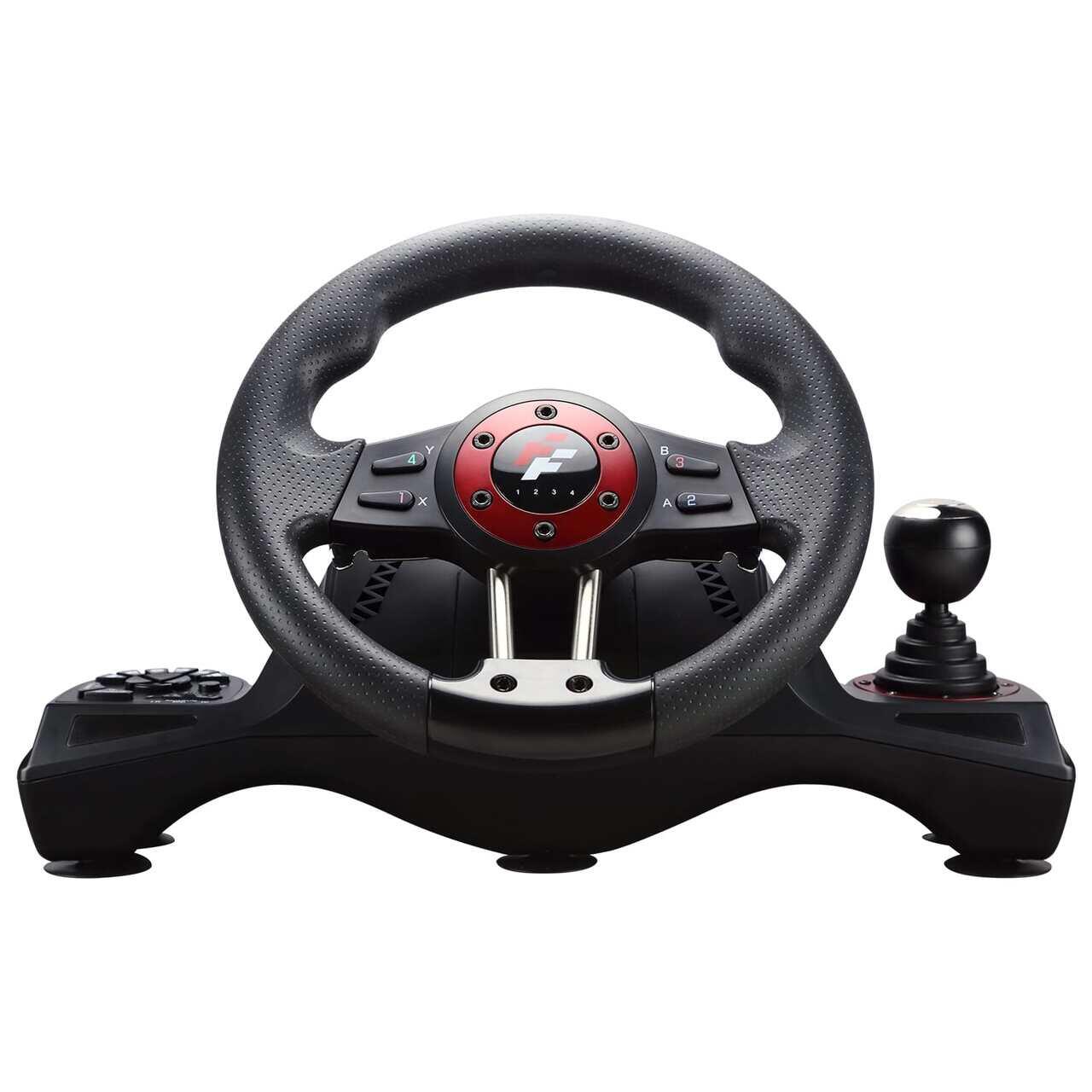 Volan gaming FlashFire Force Wheel negru cu rosu, rotire: 270°, marja de eroare volan: 0.05°, volan imbracat in cauciuc pentru o aderenta sporita, schimbator +/-, 4-way D-pad, 2 padele, X-input/D-input mode, vibratii, 12 butoane, posibilitate mapare butoane, 2 pedale, pedalele se pot plia pentru a usura depozitarea, compatibilitate: PS3 / PS4 / PC / Nintendo Switch / Xbox, prindere pe ventuze si menghine, lungime fir: 180cm, conector USB