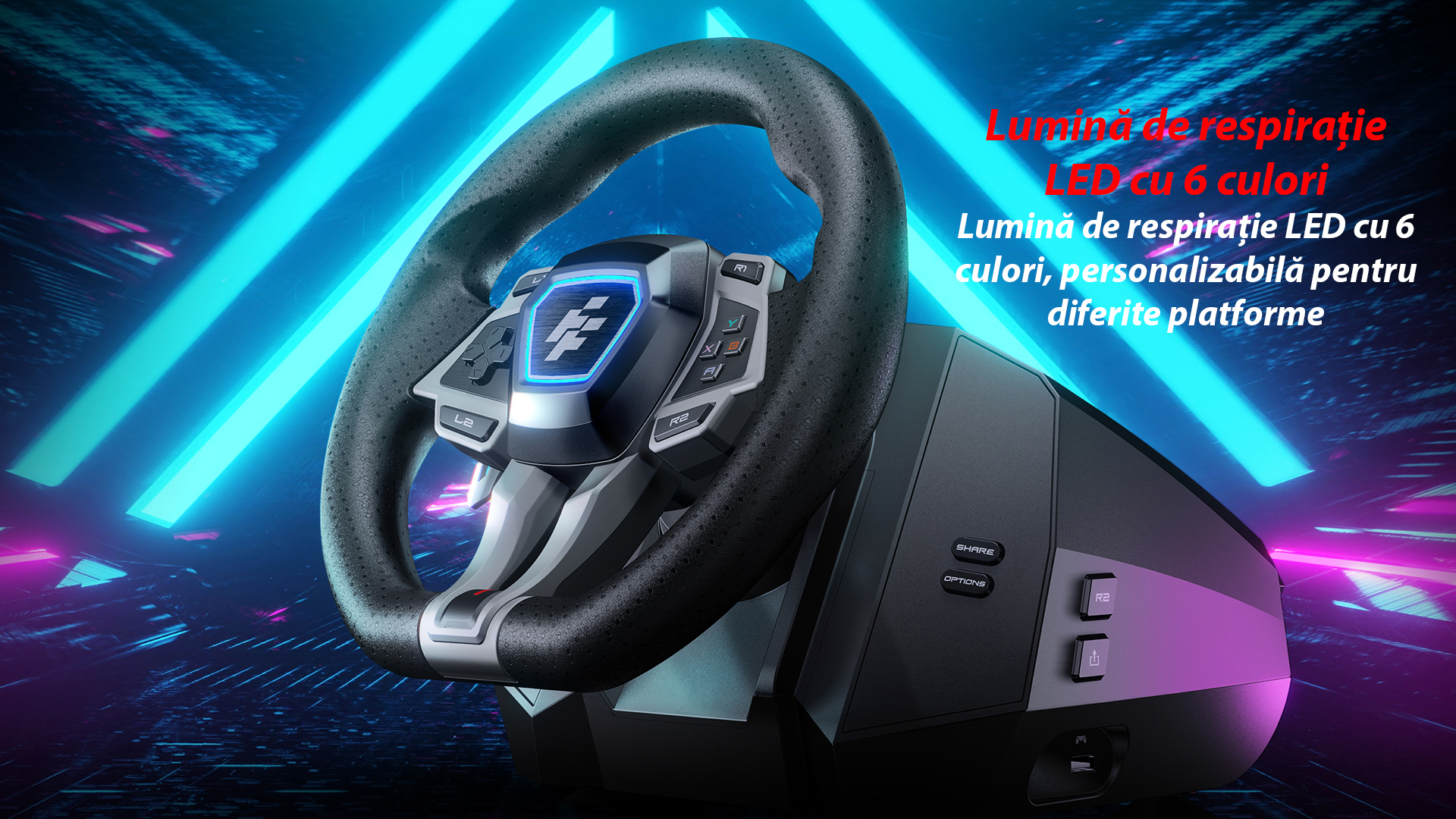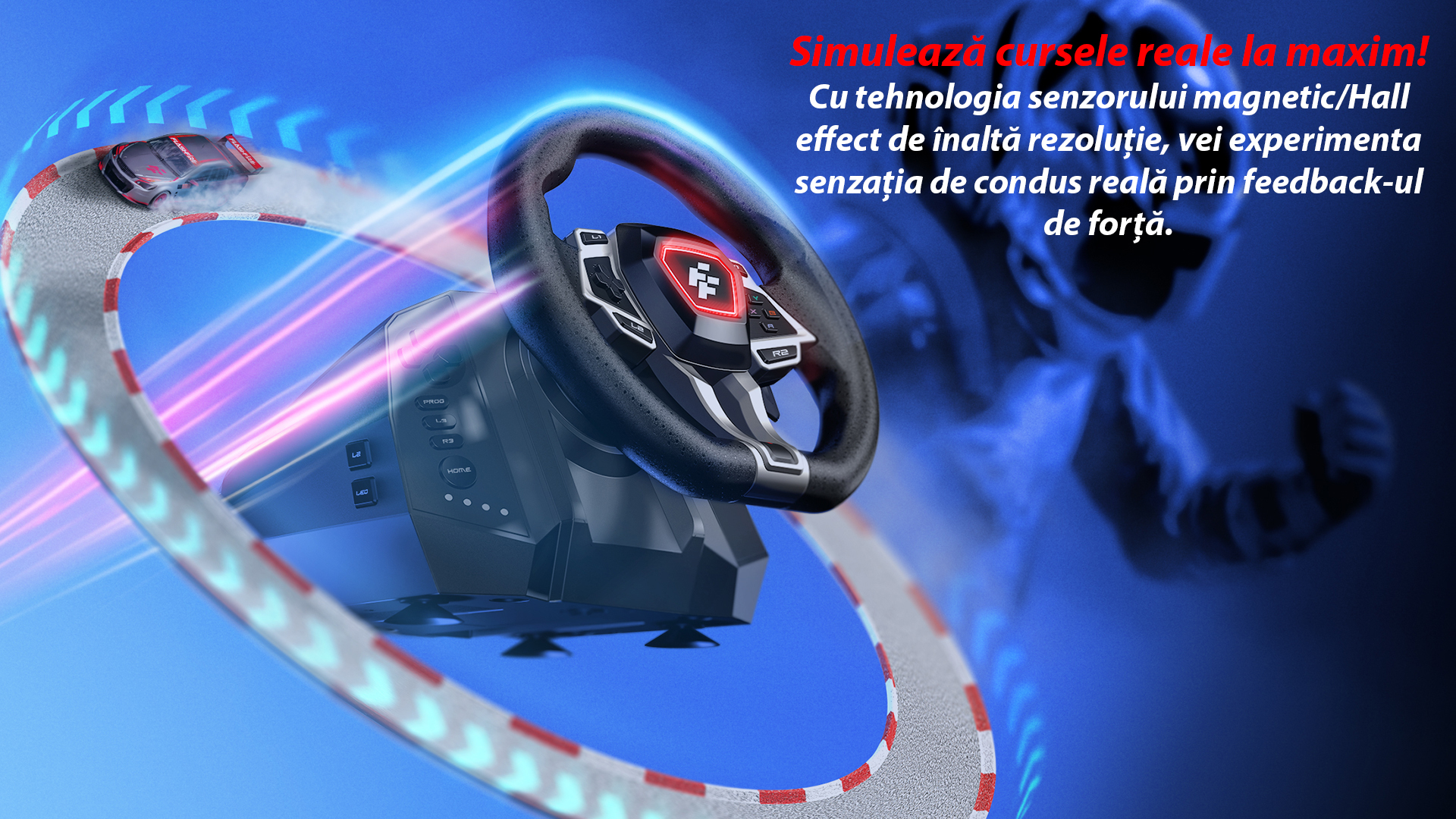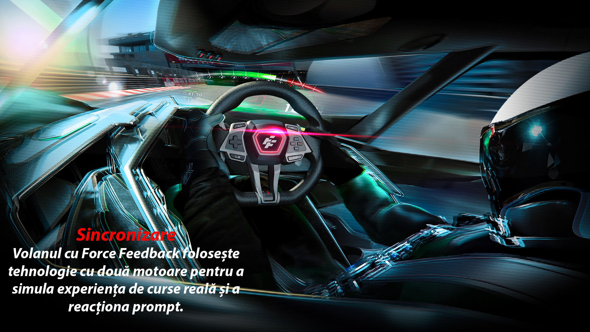Volan Gaming FlashFire Imola negru cu rosu, rotire: 900°, revenire automata la centru, marja de eroare volan: 0.05°, diametru volan: 10 inch, 8-way D-pad, 2 padele, X-input/D-input mode, doua motoare pentru vibratii, schimbator cu 6 trepte si marsarier, 22 butoane, posibilitate mapare butoane, 3 pedale, pedalele se pot plia pentru a usura depozitarea, compatibilitate: PS5/PS4 / PC / Xbox, prindere pe ventuze si menghine, 1x USB, lungime fir: 180cm, include converter volan Imola (F107) pentru PS5, conector USB, dimensiuni: 284x362x280mm, conector USB