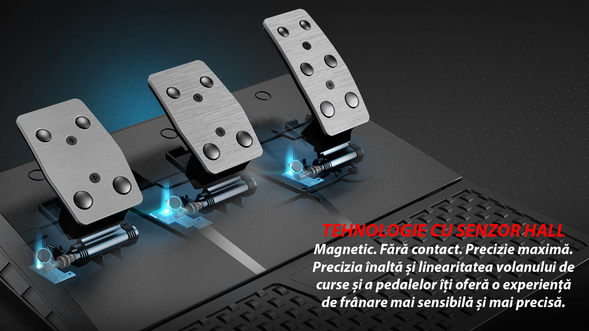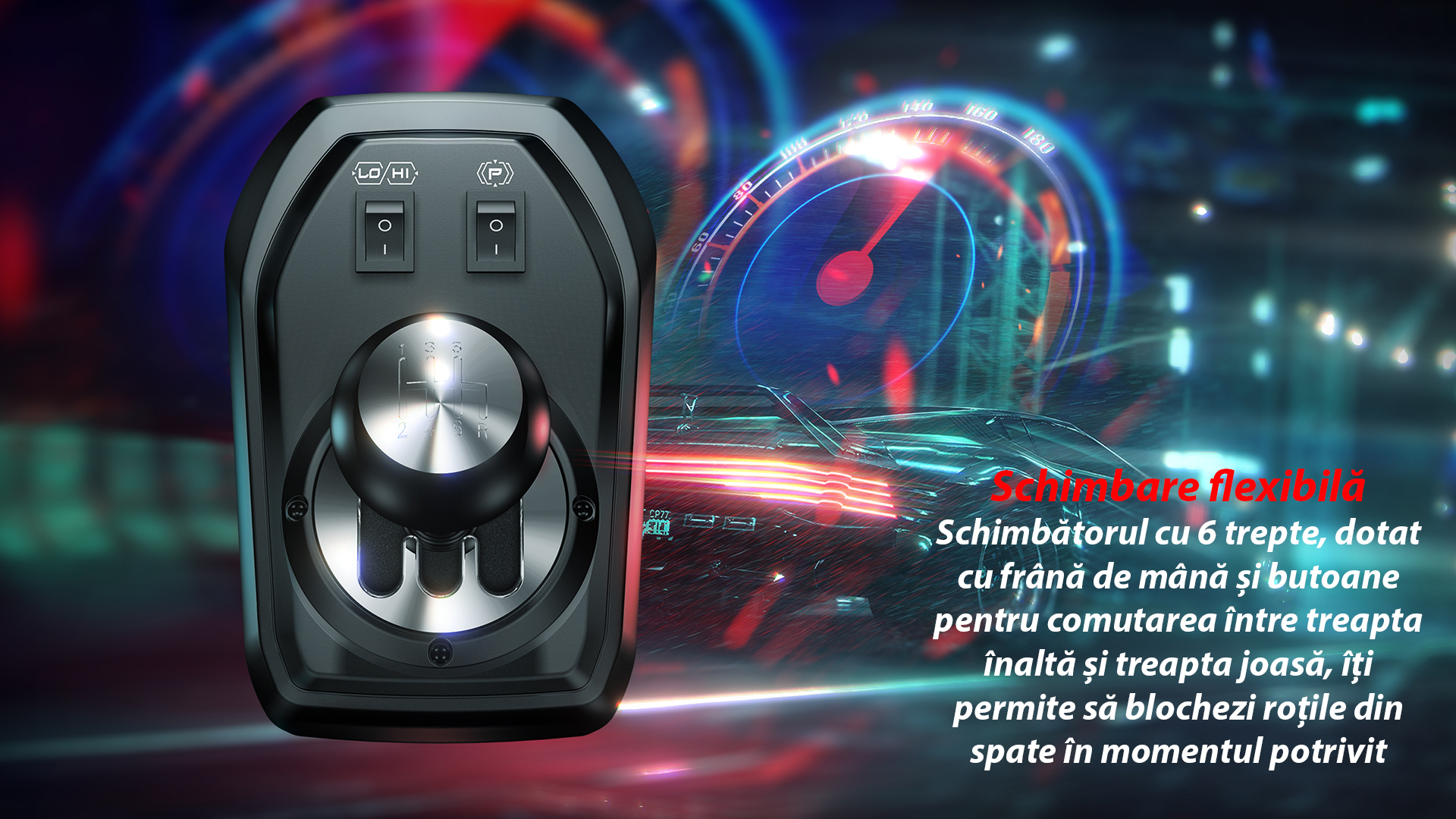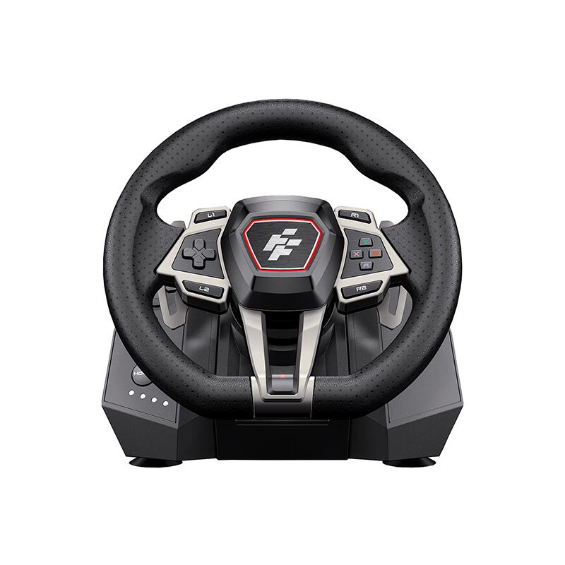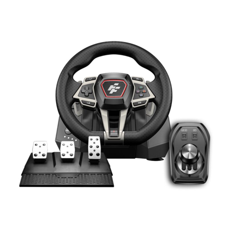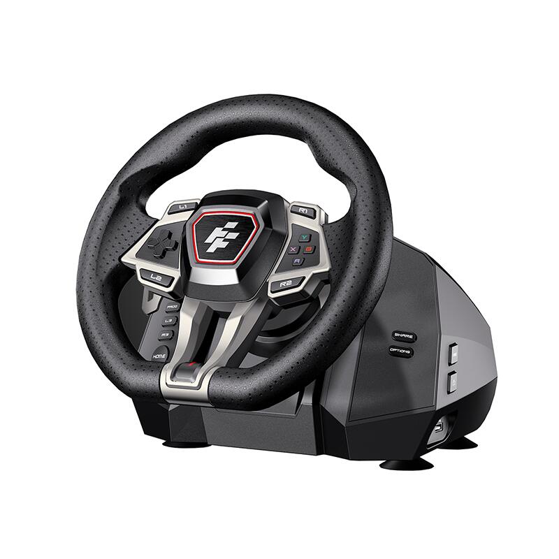 Volan Gaming FlashFire Imola negru cu rosu, rotire: 900°, revenire automata la centru, marja de eroare volan: 0.05°, diametru volan: 10 inch, 8-way D-pad, 2 padele, X-input/D-input mode, doua motoare pentru vibratii, schimbator cu 6 trepte si marsarier, 22 butoane, posibilitate mapare butoane, 3 pedale, pedalele se pot plia pentru a usura depozitarea, compatibilitate: PS5/PS4 / PC / Xbox, prindere pe ventuze si menghine, 1x USB, lungime fir: 180cm, include converter volan Imola (F107) pentru PS5, conector USB, dimensiuni: 284x362x280mm, conector USB