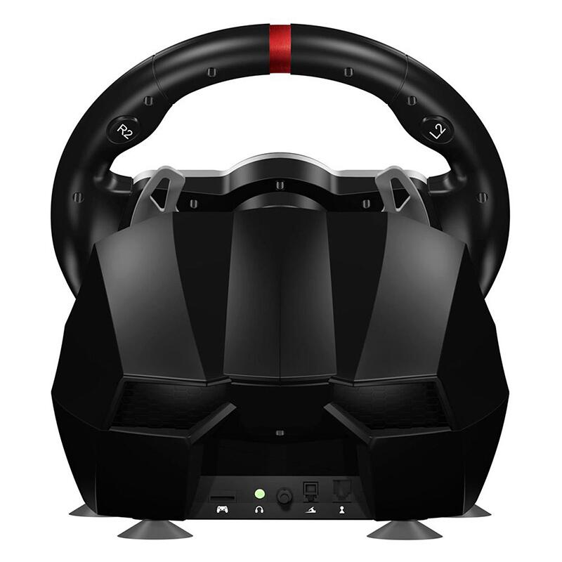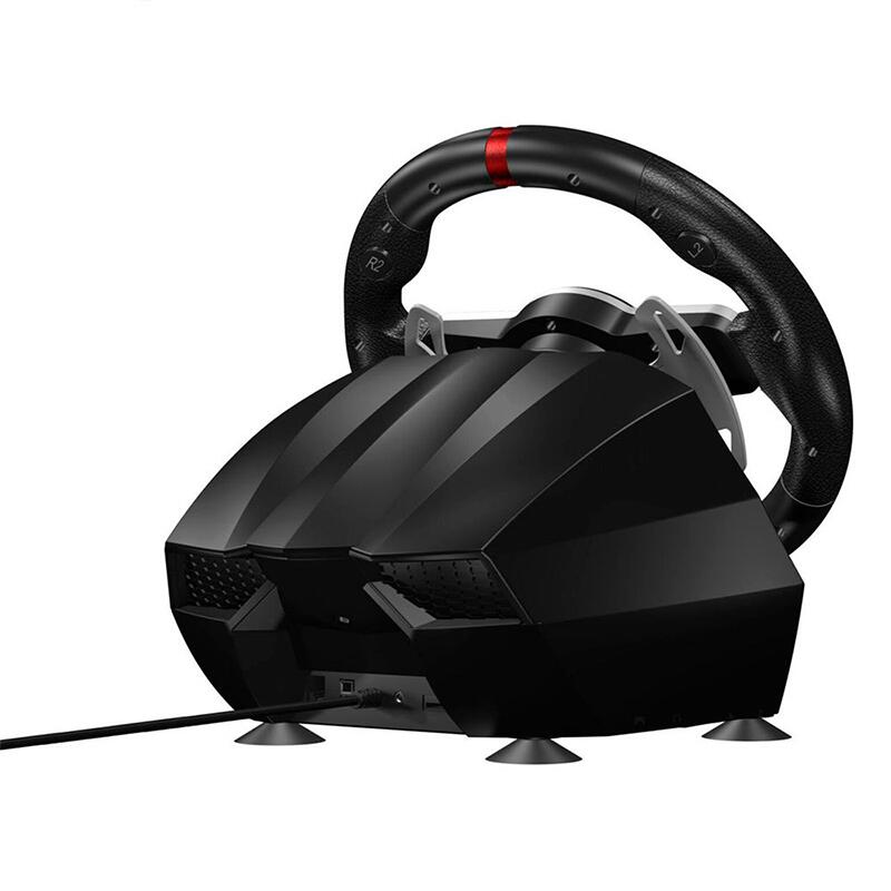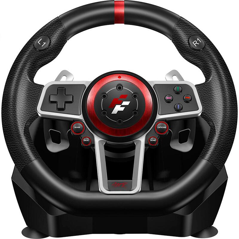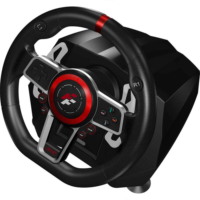 Volan gaming FlashFire Suzuka 900R negru cu rosu, rotire: 900° (se poate opta intre 270° si 900°), marja de eroare volan: 0.05°, diametru volan: 10 inch, 8-way D-pad, 2 padele, X-input/D-input mode, doua motoare pentru vibratii, schimbator cu 6 trepte si marsarier, 12 butoane, posibilitate mapare butoane, 3 pedale, pedalele se pot plia pentru a usura depozitarea, compatibilitate: PS3 / PS4 / PC / Nintendo Switch / Xbox, prindere pe ventuze si menghine, 1x USB si 1x Jack, lungime fir: 180cm, dimensiuni: 310x300x330mm, conector USB